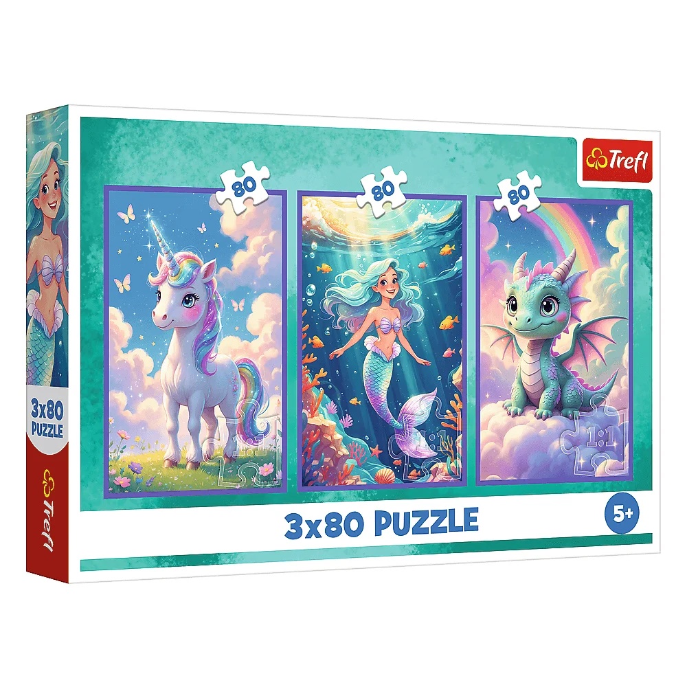 Puzzle 3X80 El. Jednorożec, Mała Syrenka, Smok